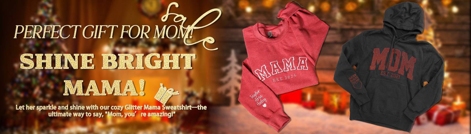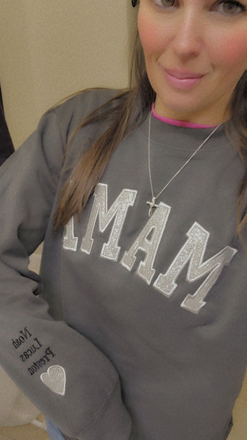 Custom Embroidered Glitter Vinyl Mama Sweatshirt