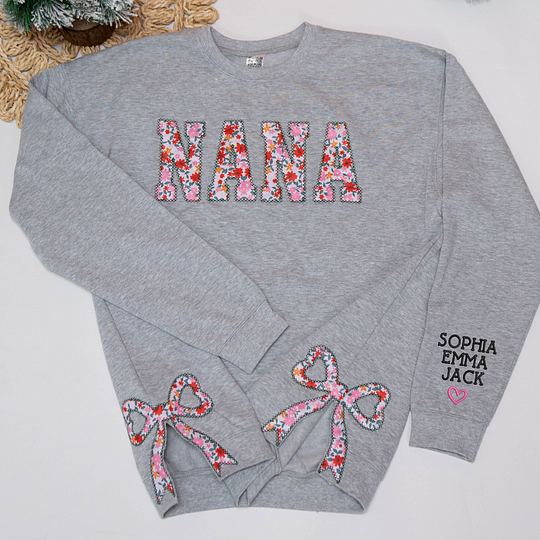 Custom Garden Nana Embroidered Side Bow Sweatshirt