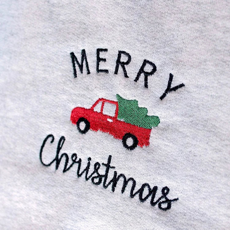 Embroidered Merry Christmas Red Truck Holiday Sweatshirt