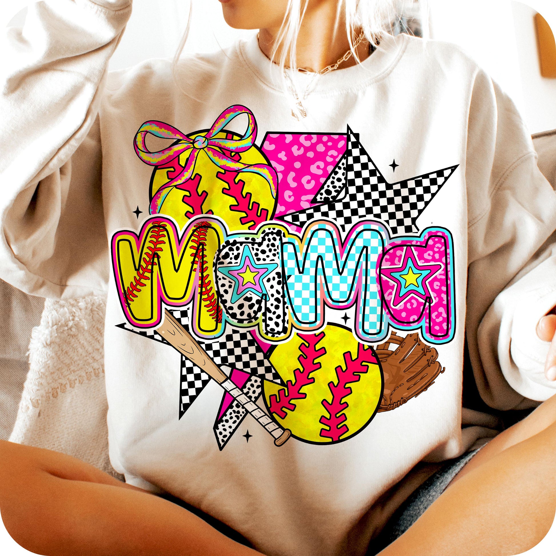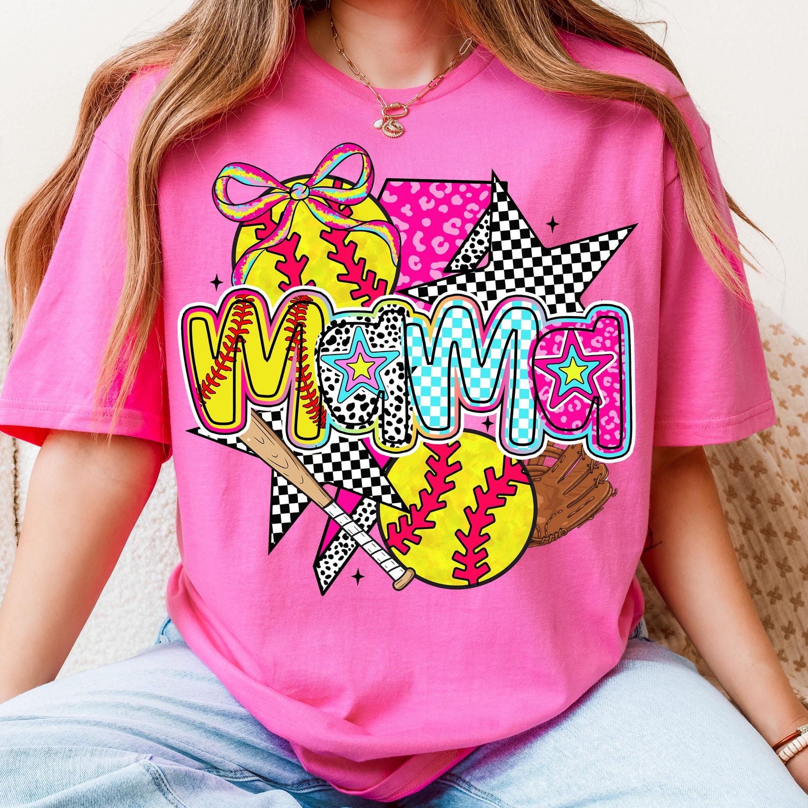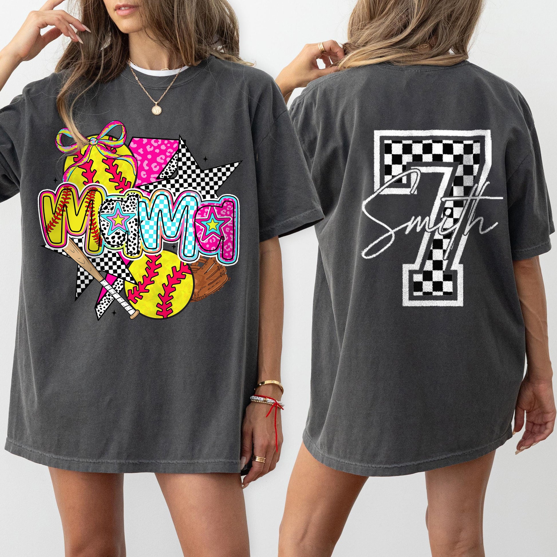 Personalized Softball Mama Pink Leopard Checkered Pattern Cheer Shirtđ„Hot Sale!