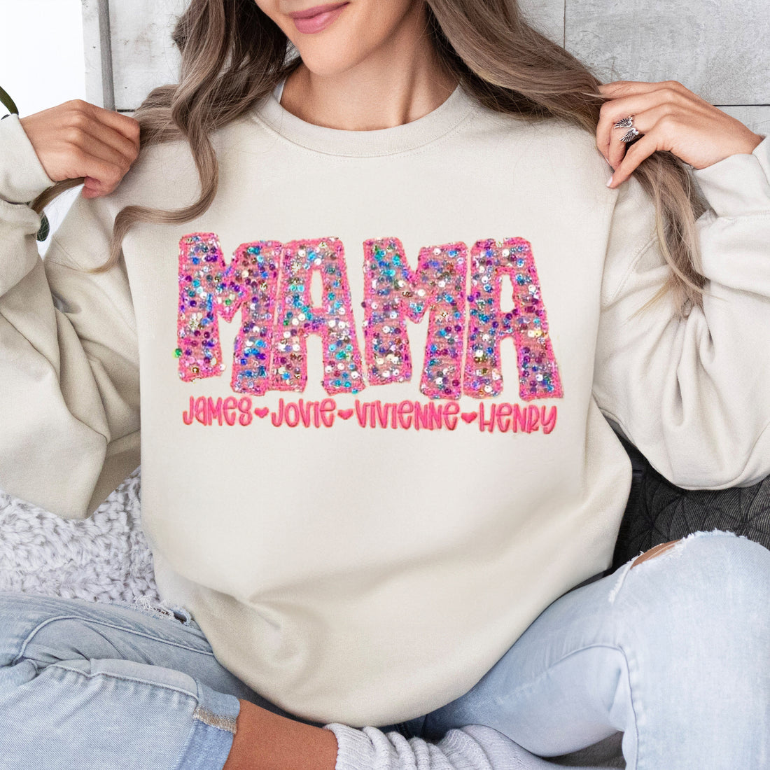 Custom Mama Embroidered Sweatshirt/Tshirt - Kids Names On Sleeves
