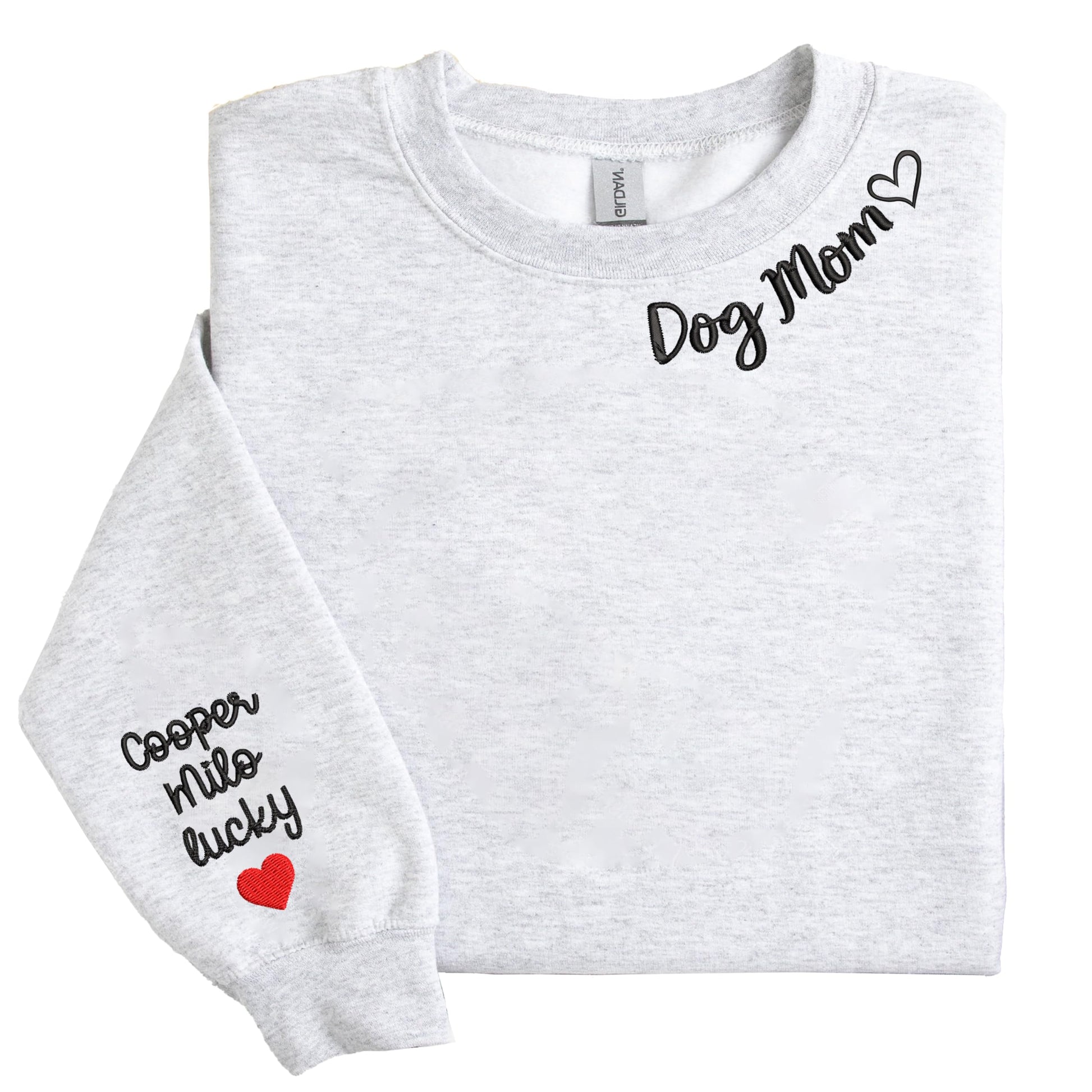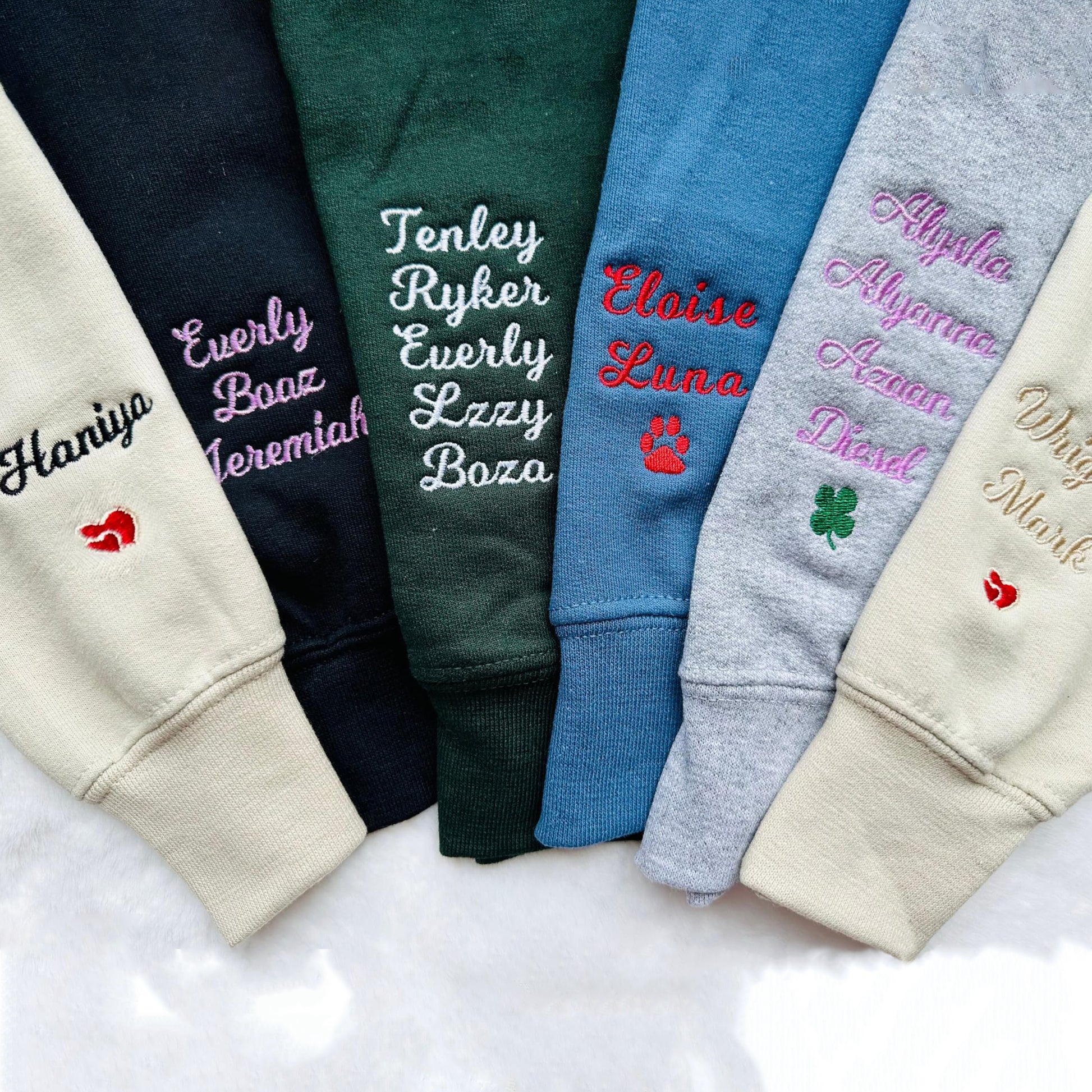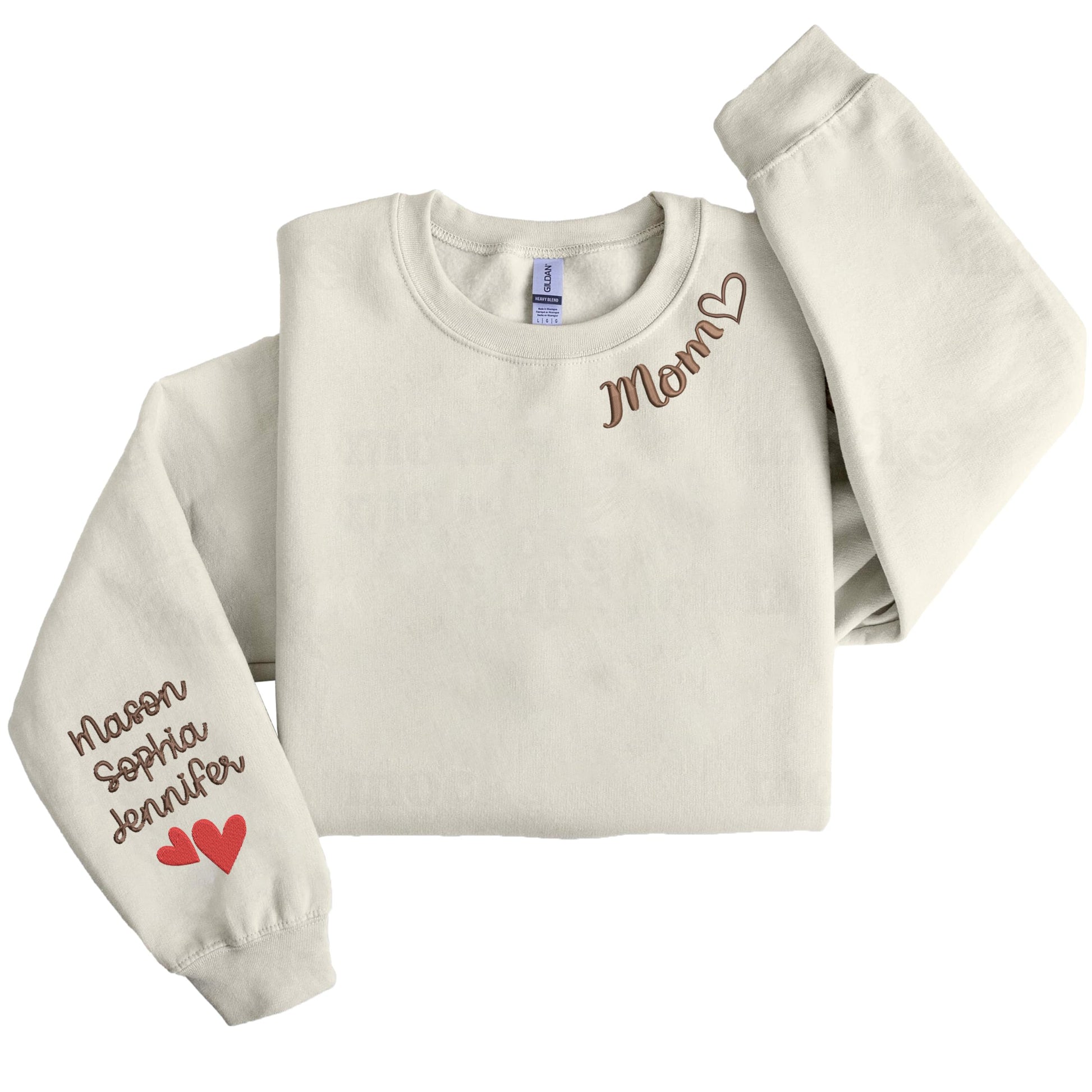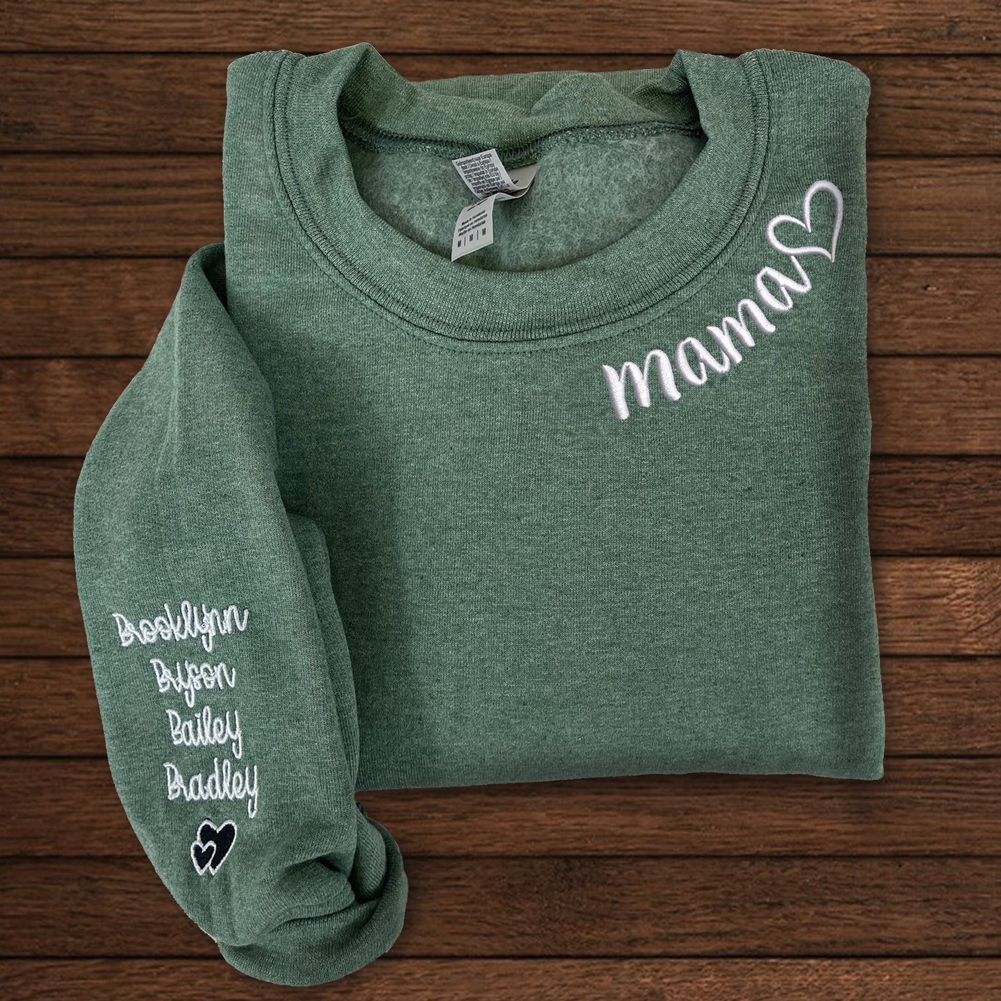 💖Custom Collar Heart Embroidered Mama Grandma Sweatshirt with Kids Name on Sleeve💖