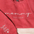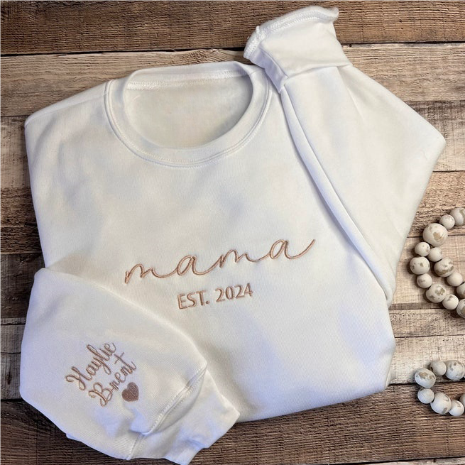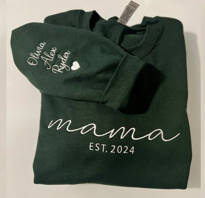 Custom Embroidered Mama Sweatshirt With Kids Names On Sleeve
