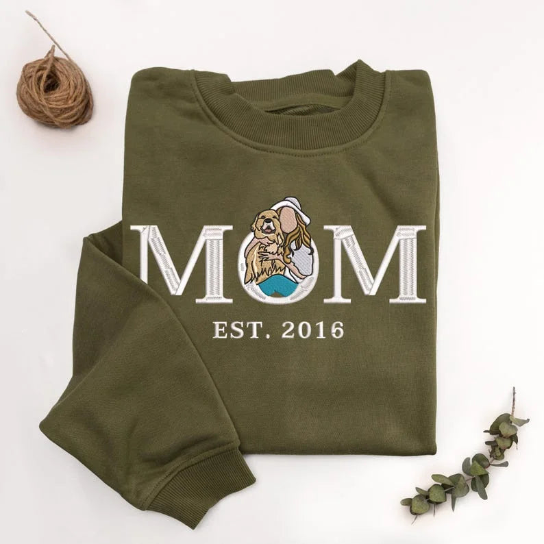 💖Personalized Embroidered Family Photo Sweatshirt - With Kids Names On Sleeve- Gift for Mom & Grandma & Family.💖