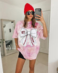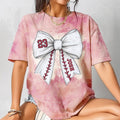 Personalized Baseball Bow Watercolor Tie-Dye T-Shirt