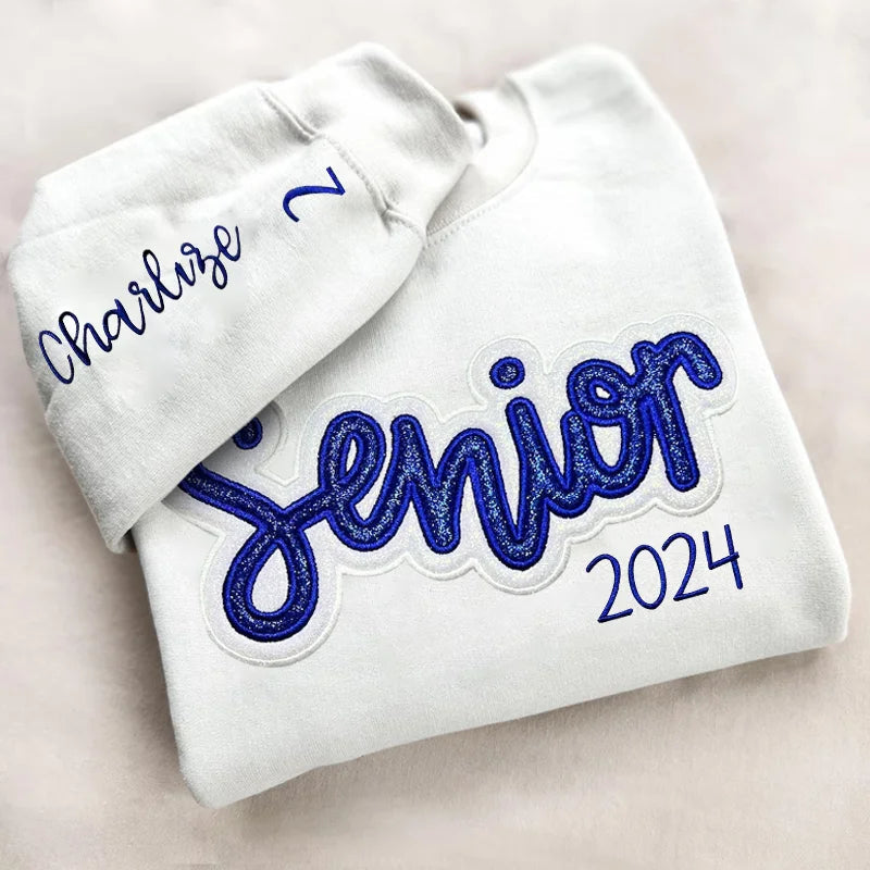 🎓Class Of 2025 - Custom Embroidered Glitter Sequined Senior Sweatshirt 🎓