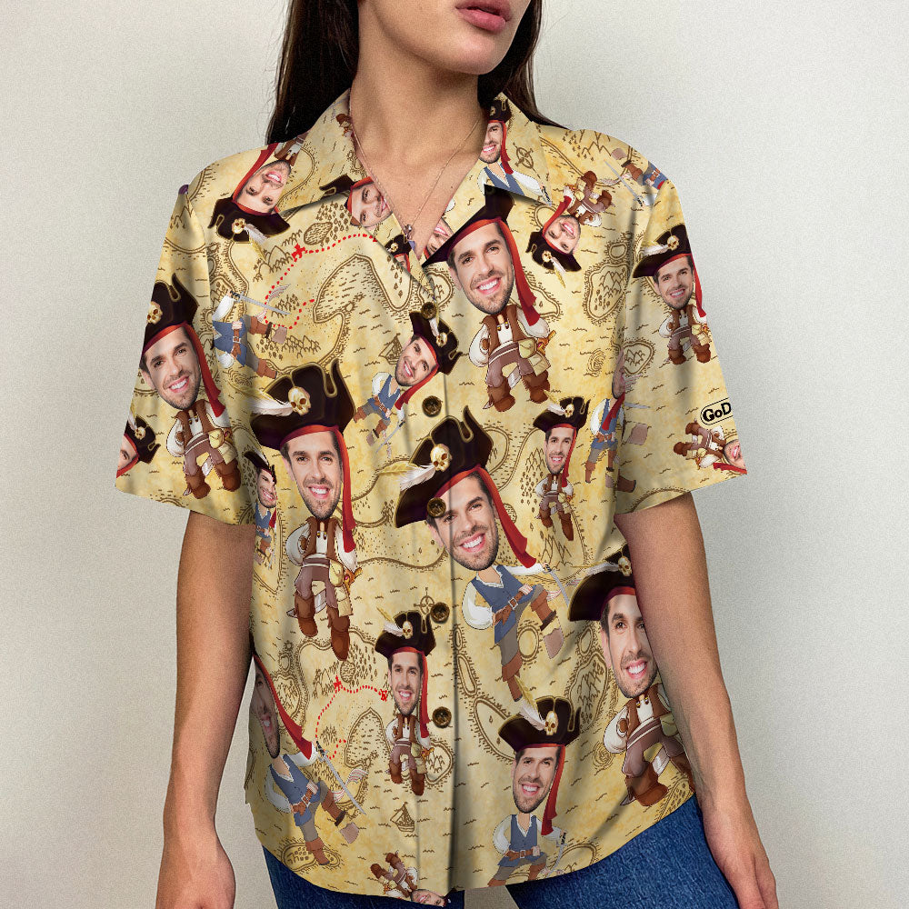 Custom Pirate Face Hawaiian Shirt and Men Beach Shorts- Summer Gift For Him, Pirate Lover