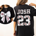 Custom Front Back Design Baseball Bow Mom Cheer T-Shirt