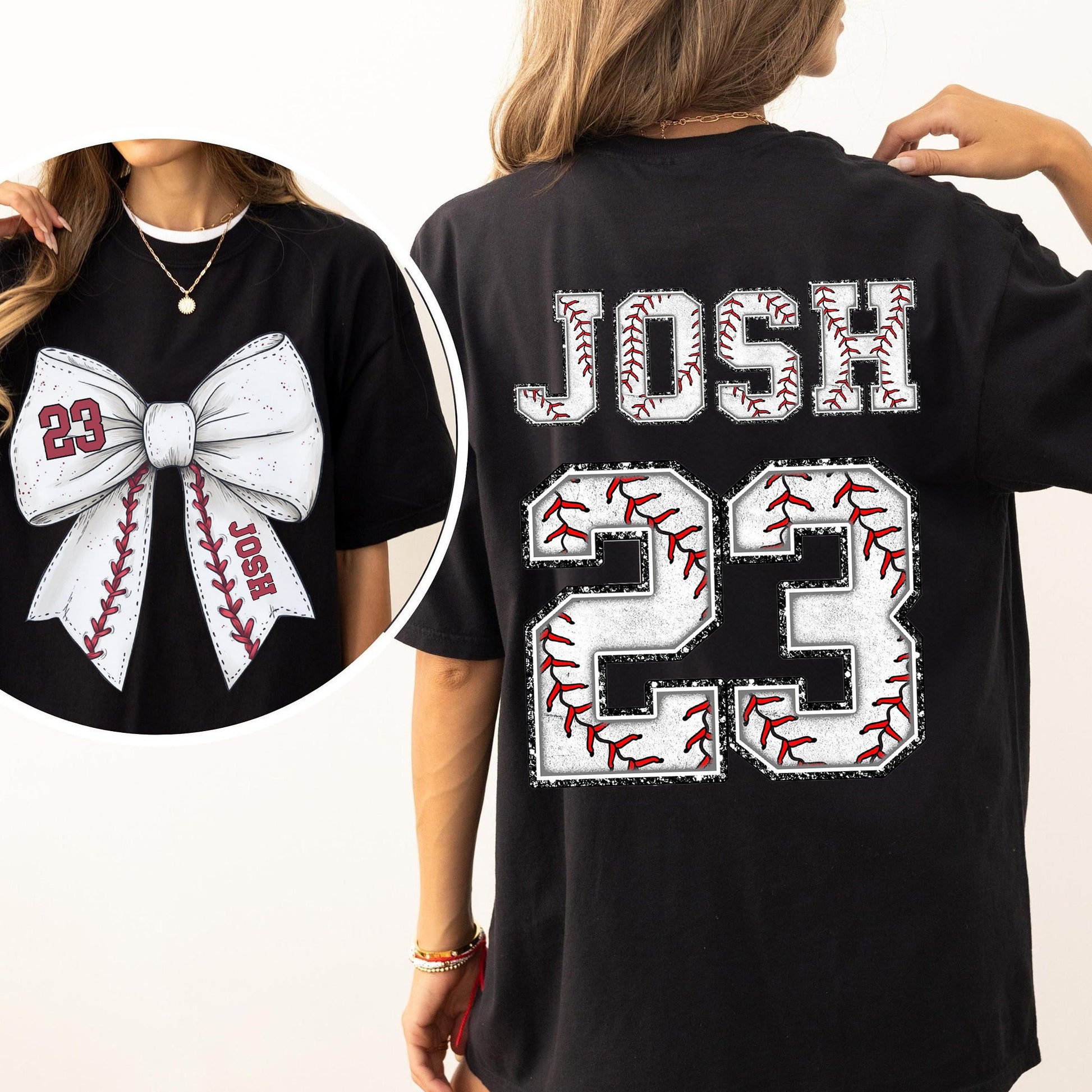 💖Shine On Game Day - Custom Baseball Bow Shirt - Baseball Mom Shirt With Kids Name & Jersey Number - Family Cheer Shirt
