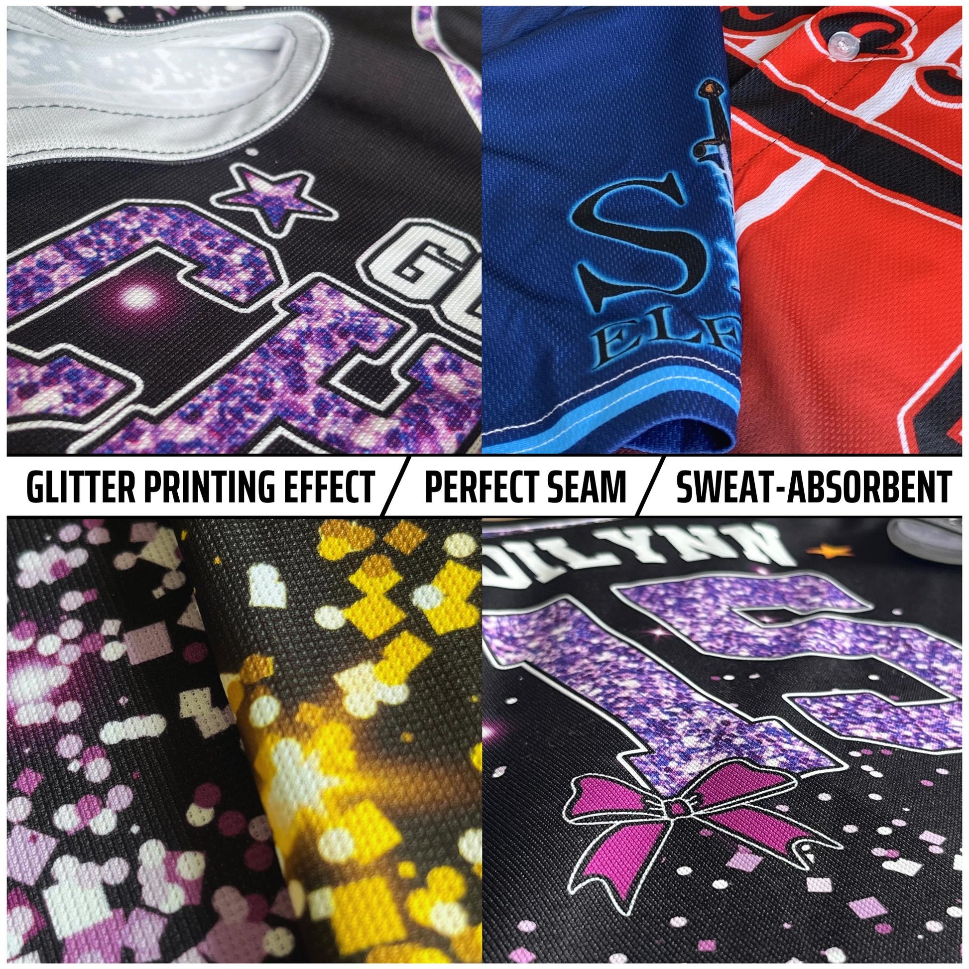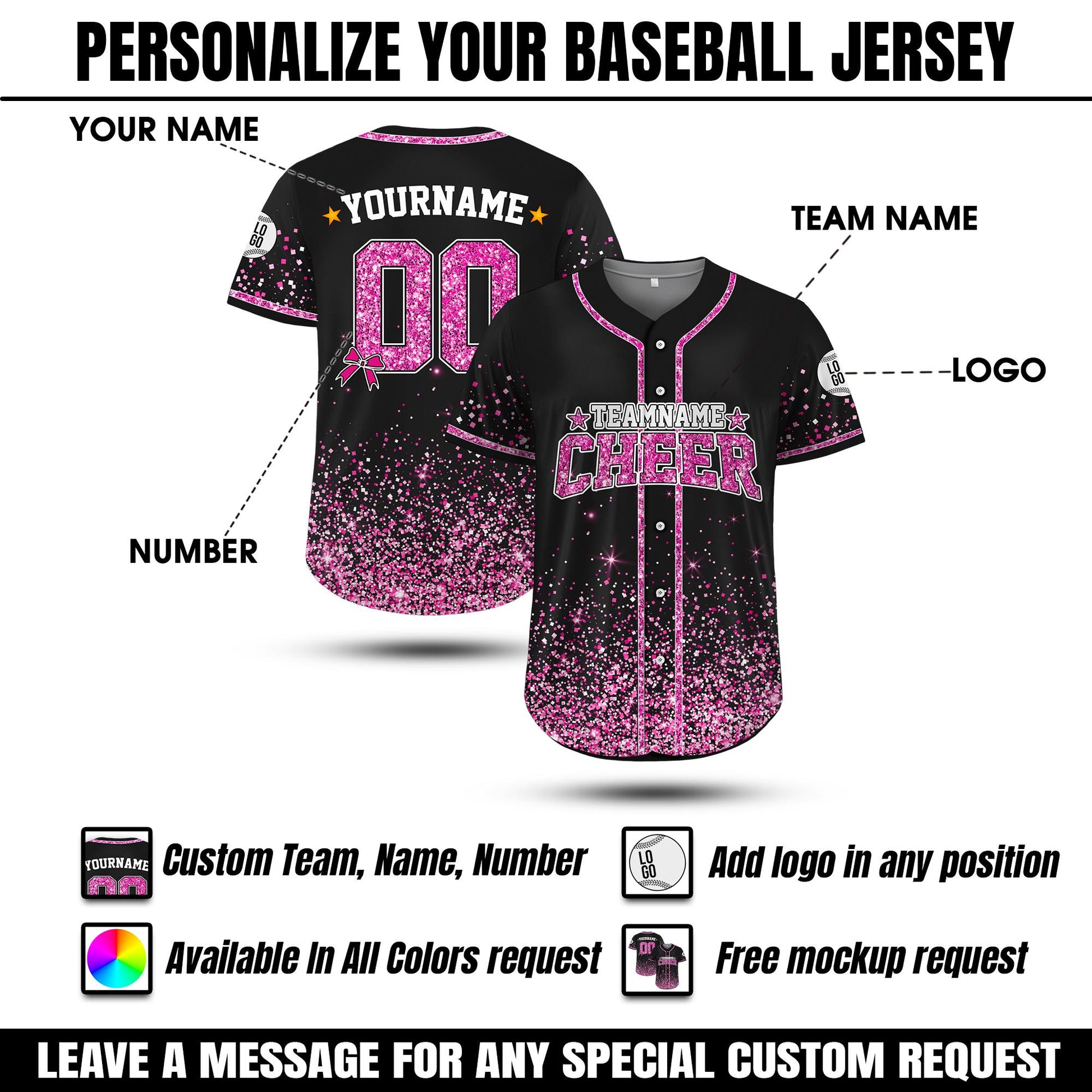 💖Custom Glitter Baseball Jersey with Team Name Number for Adult Kid - Faux Cheer Glitter Jersey