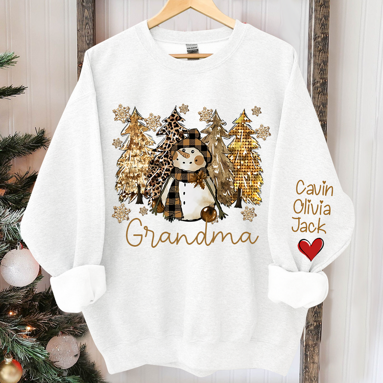 🎄💖Custom Grandma Christmas snowman Sweatshirt - With Grandkids Name On Sleeve💖🎄