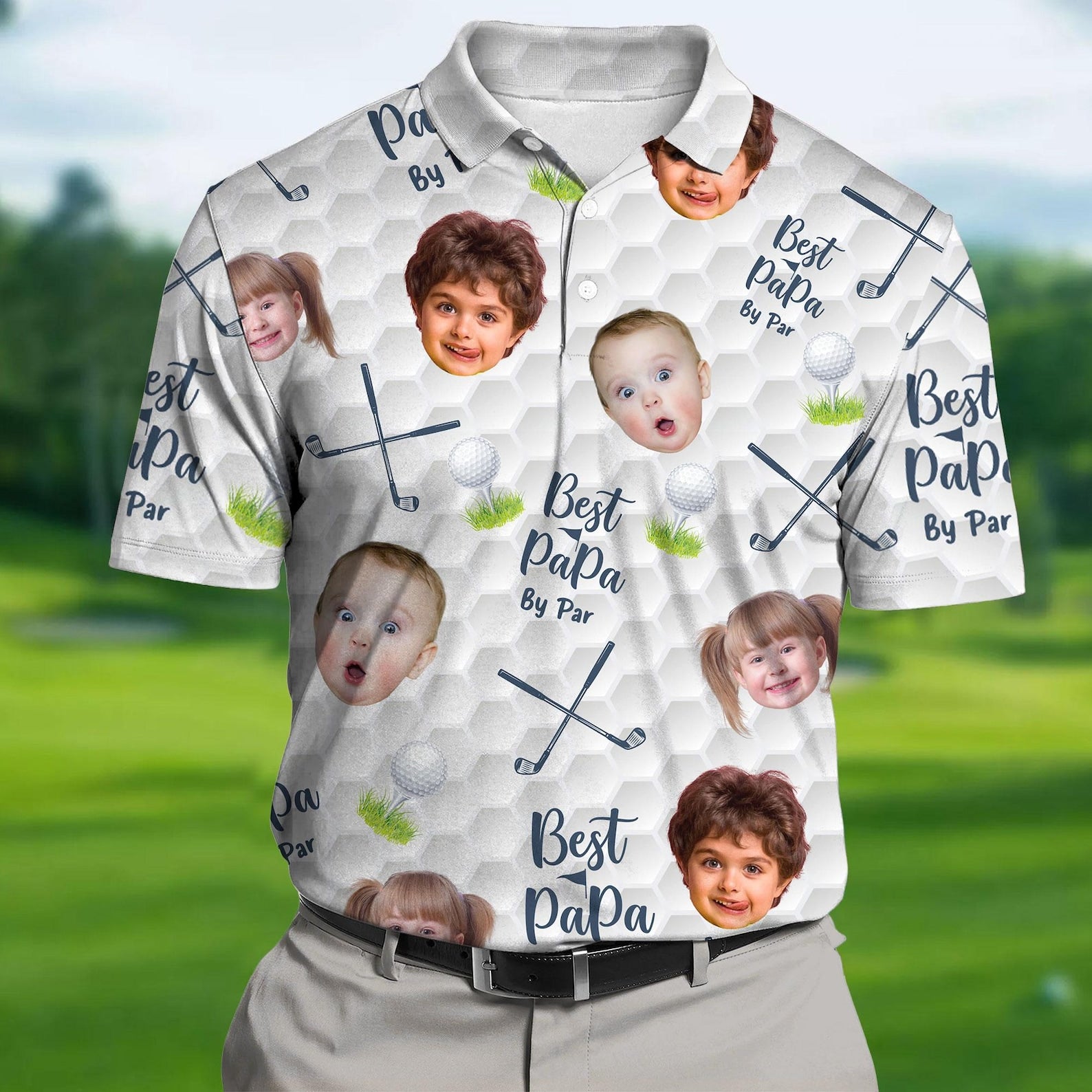 🎁A thoughtful Father's Day gift featuring "Best Dad By Par" or "Best Papa By Par" MESSAGE. This classic polo is stylish and comfy for any occasion. Add your special photo for a unique touch, capturing cherished memories. Made from lightweight, breathable fabric with a bit of stretch, it's perfect for casual or active wear. With a regular fit and durable double-stitch hems, it's easy to move in and long-lasting. Plus, our sublimation printing ensures vibrant, permanent colors. Show your dad some love with this meaningful tribute!