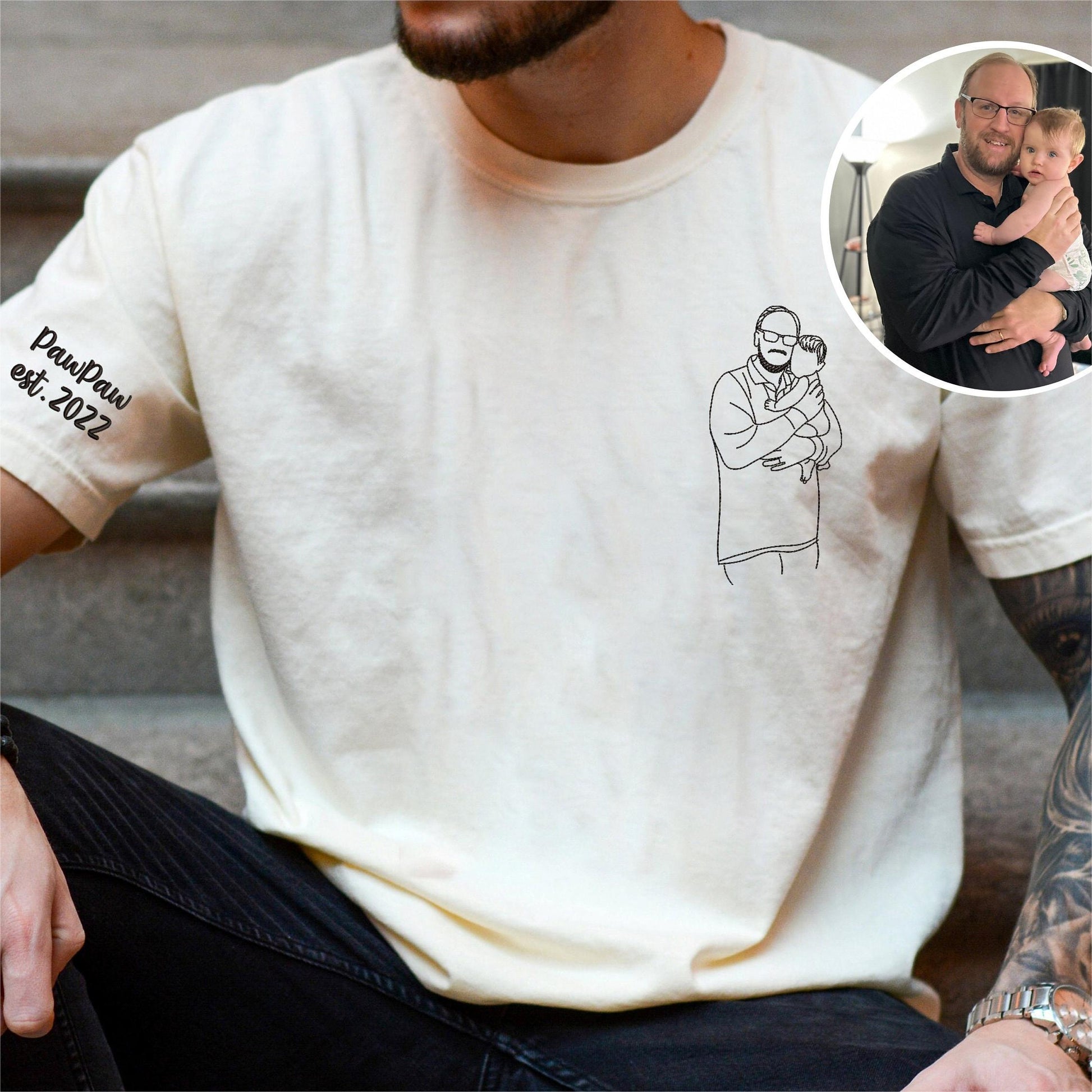 💖Custom Photo Shirt For Dad - Dad Portrait Embroidered Shirt - New Dad Shirt, Fathers Day Gifts, Gift For Husband💖
