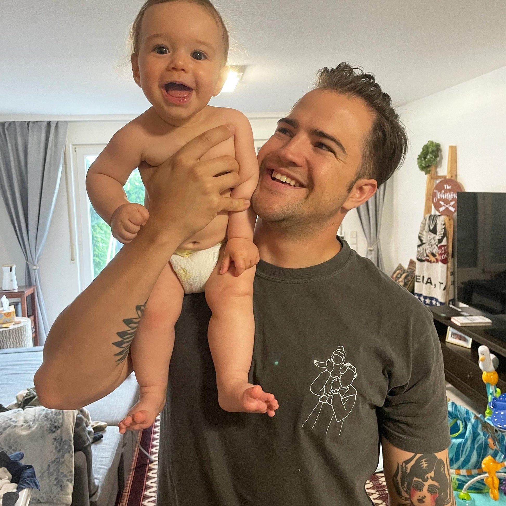 Care: Wash items inside out in cold water, do not bleach, do not dry clean, do not iron directly on the design. Tumble dry low.