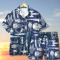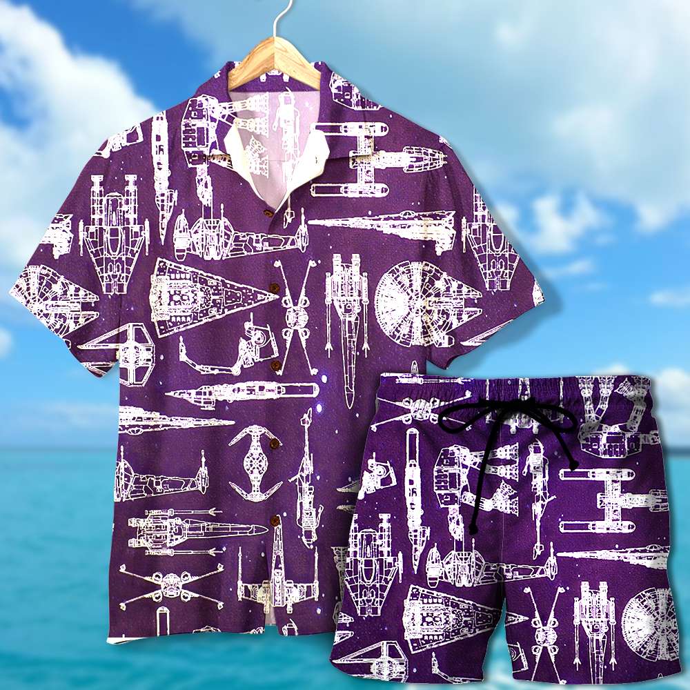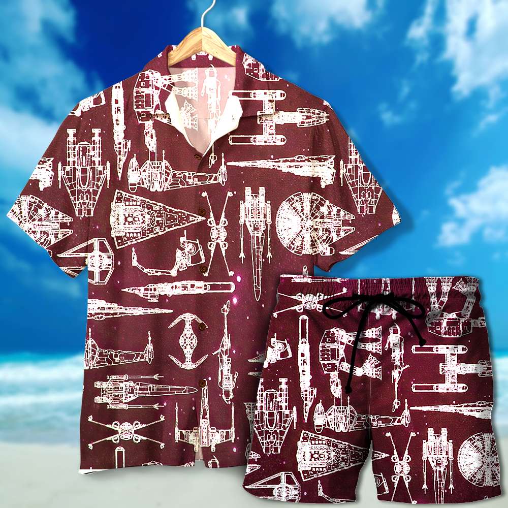 Hawaiian Shirt & Men's Beach Shorts - Spaceship Pattern
