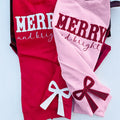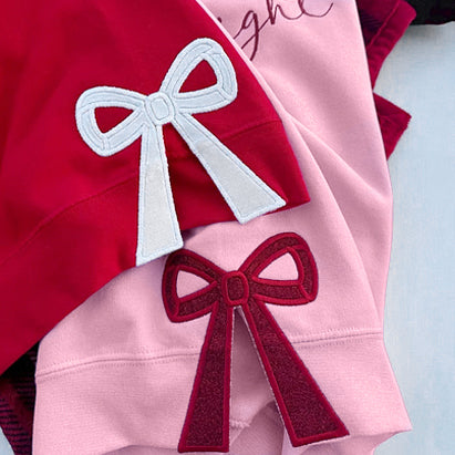 🎄💖Merry and Bright Embroidered Bow Sweatshirt - Pullover Bow Side Bow Applique💖🎄