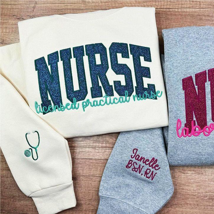 💖NURSE Custom Glitter Embroidered Sweatshirt💖