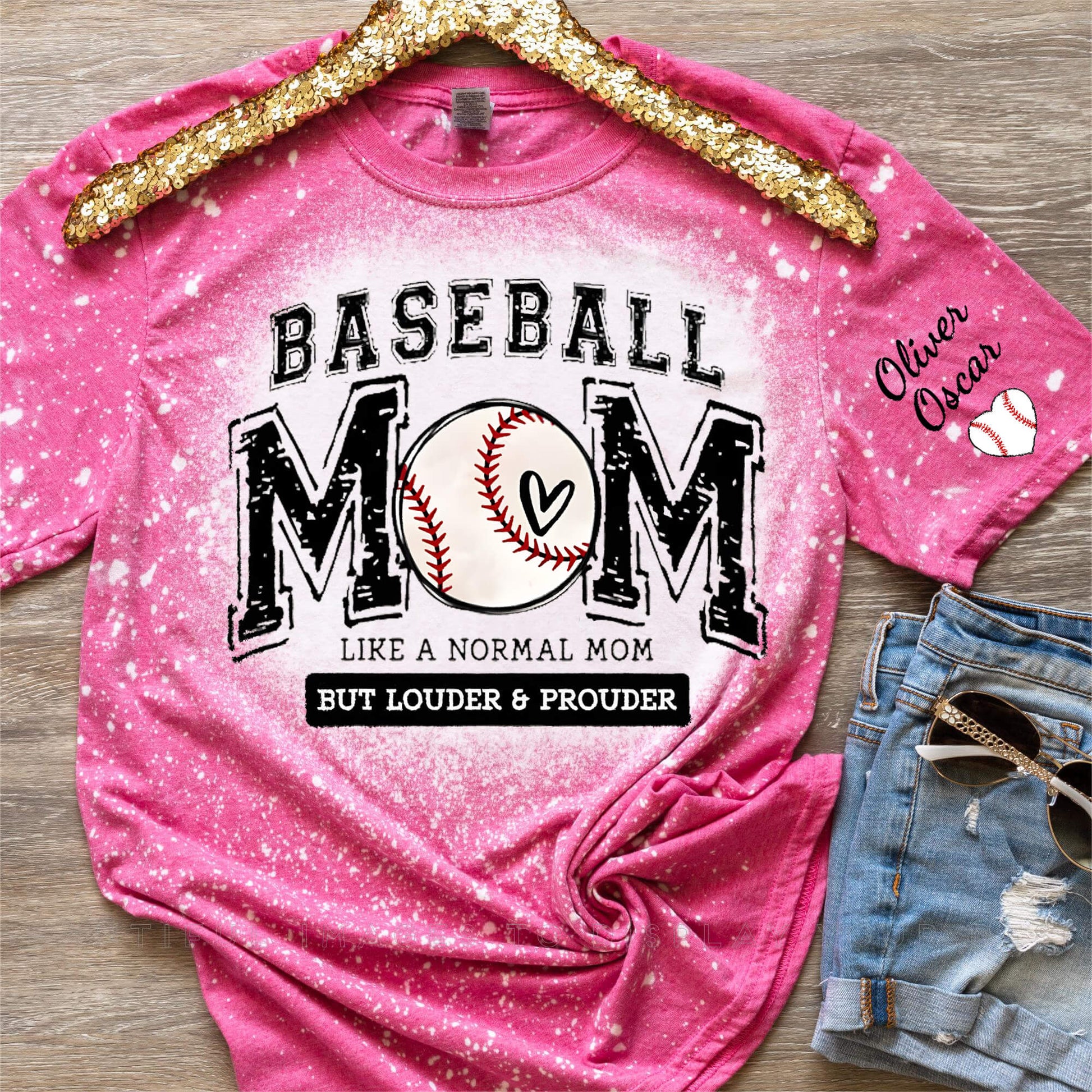 💖Personalized Bleached T-Shirt - Baseball Mom Like A Normal Mom But Lounder & Prouder