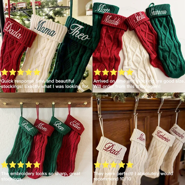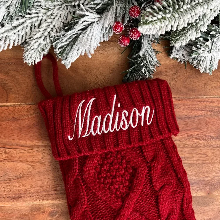 🎄This personalized classic knitted Christmas stocking is perfect for holding your Christmas gifts! The design will be embroidered on the stocking in either red, green or white thread. Our stocking are professionally embroidered with high quality thread, so you can enjoy them year after year!