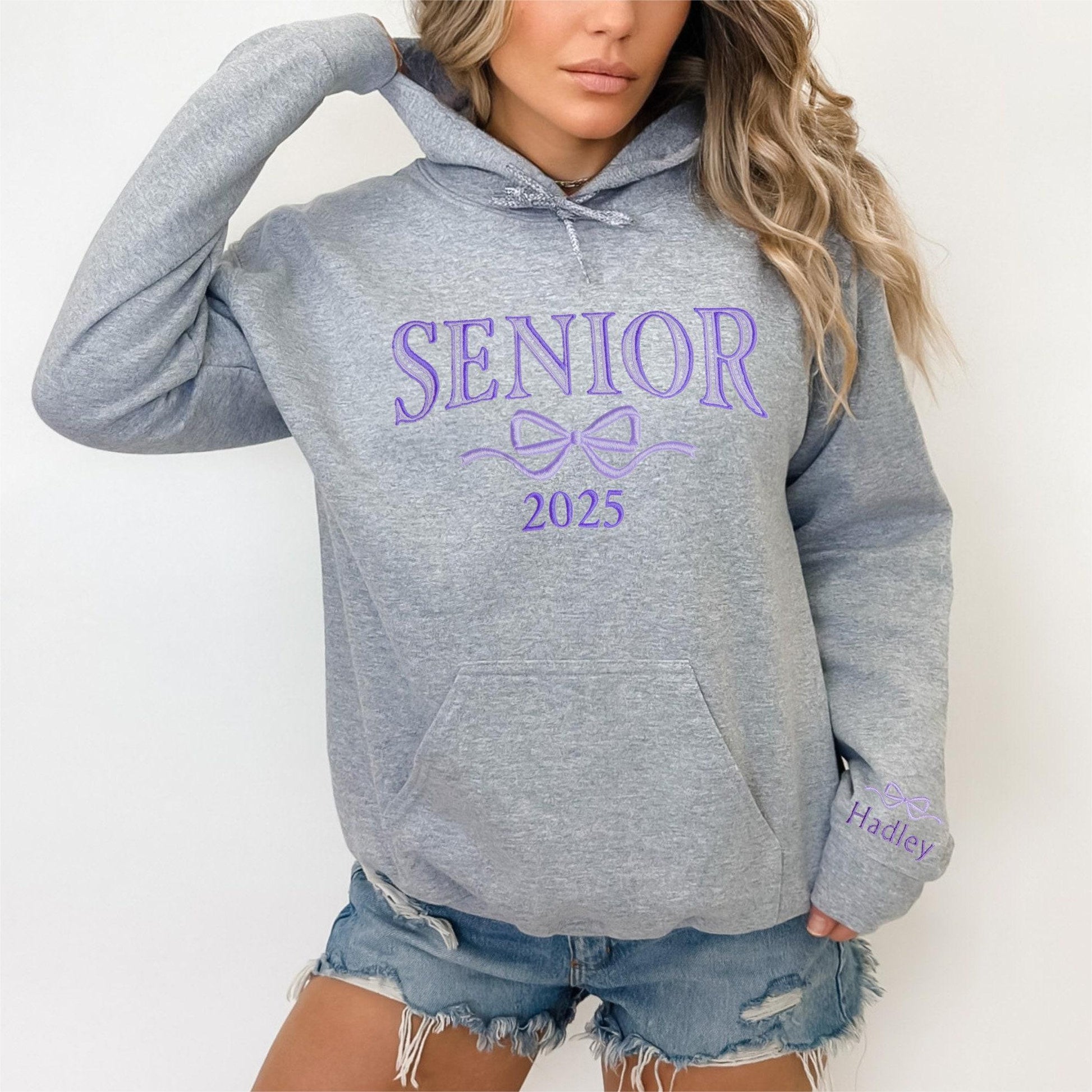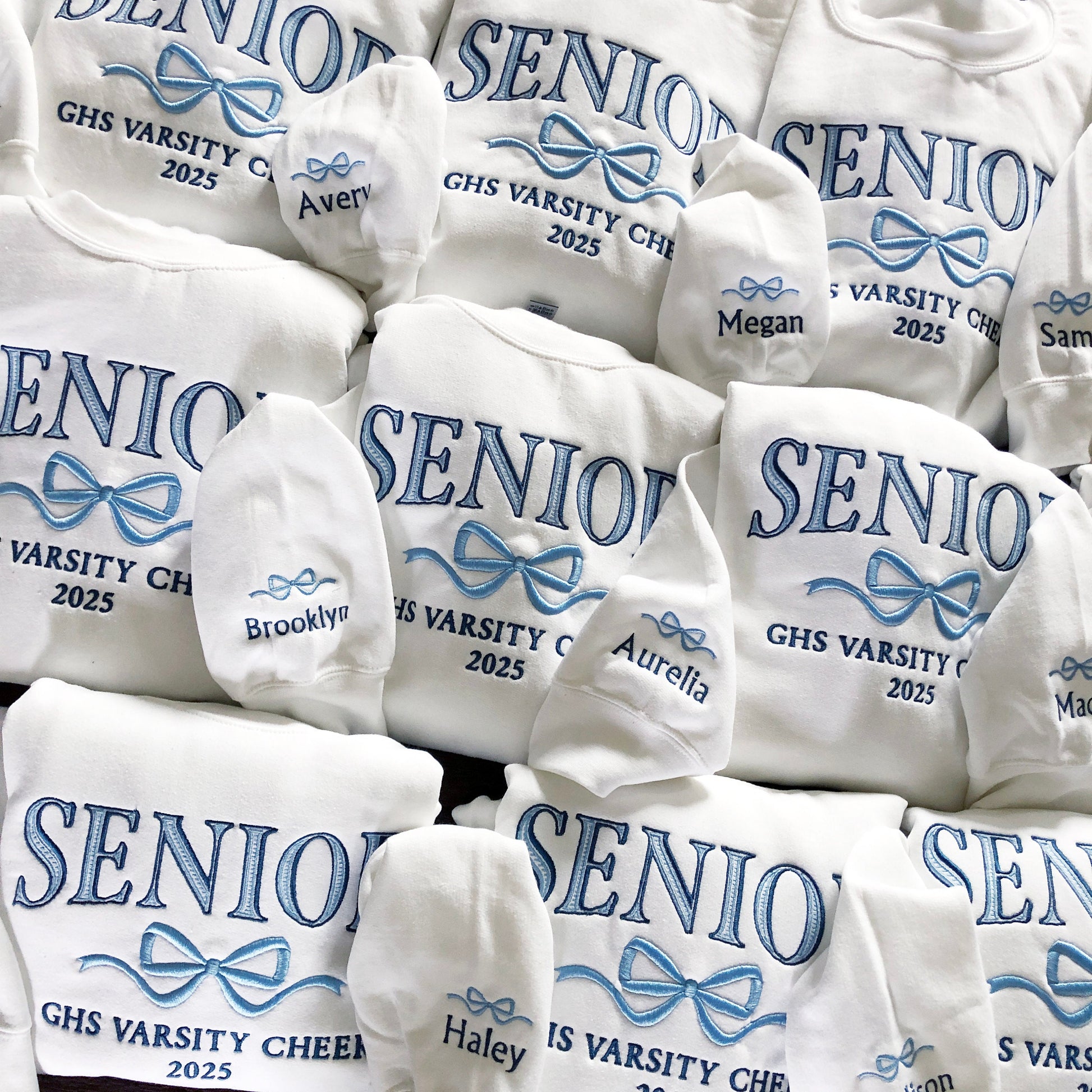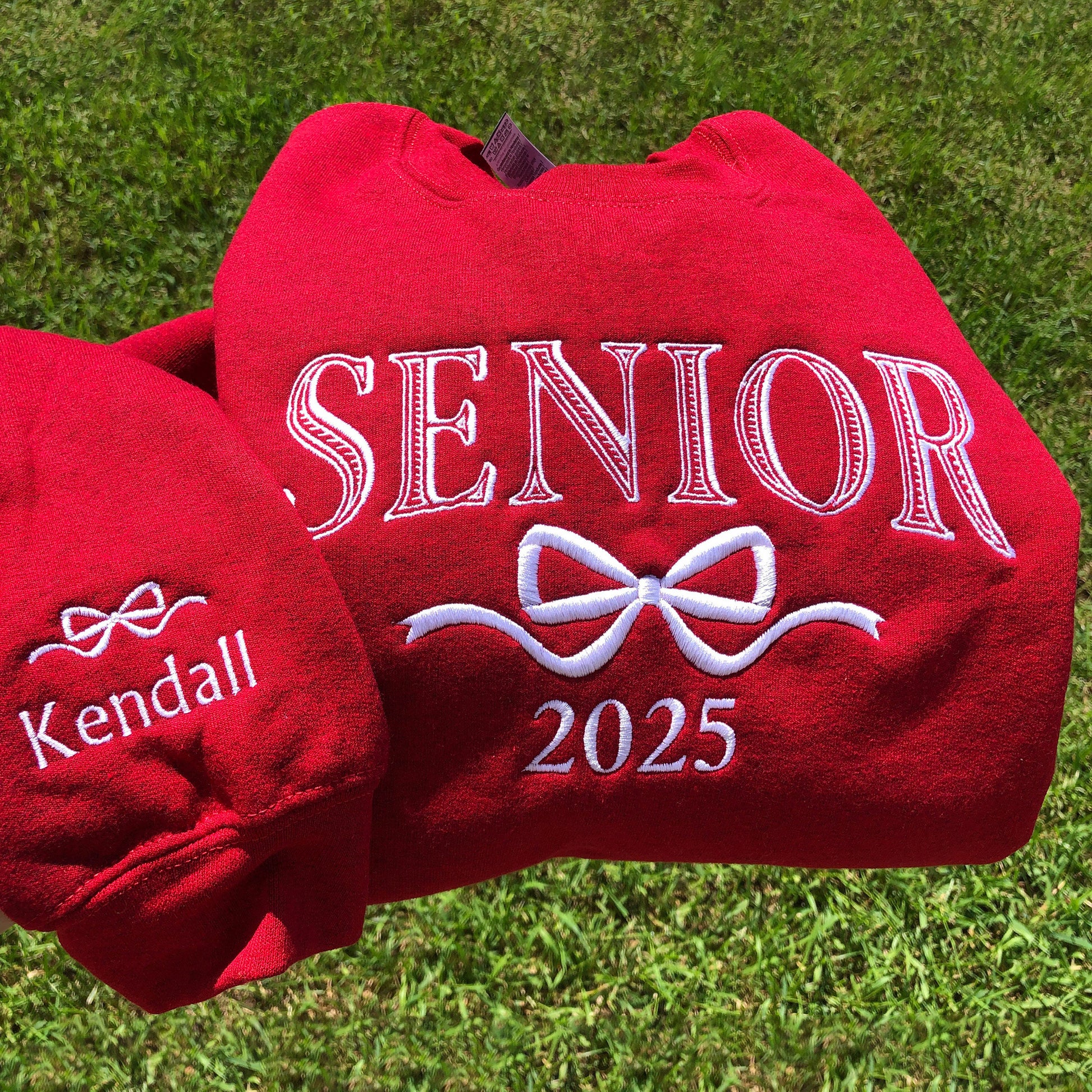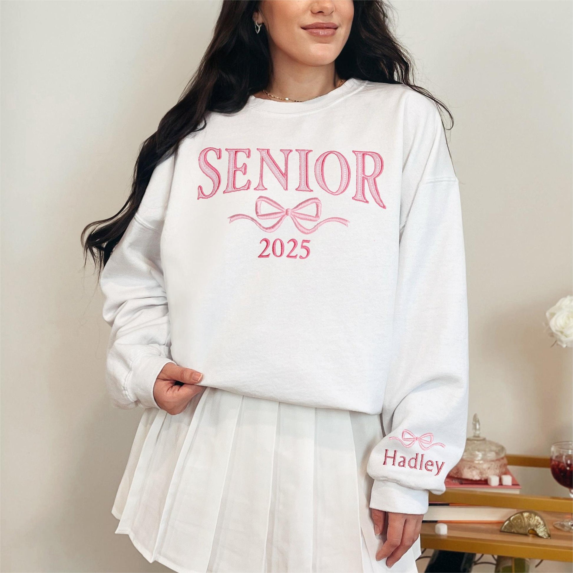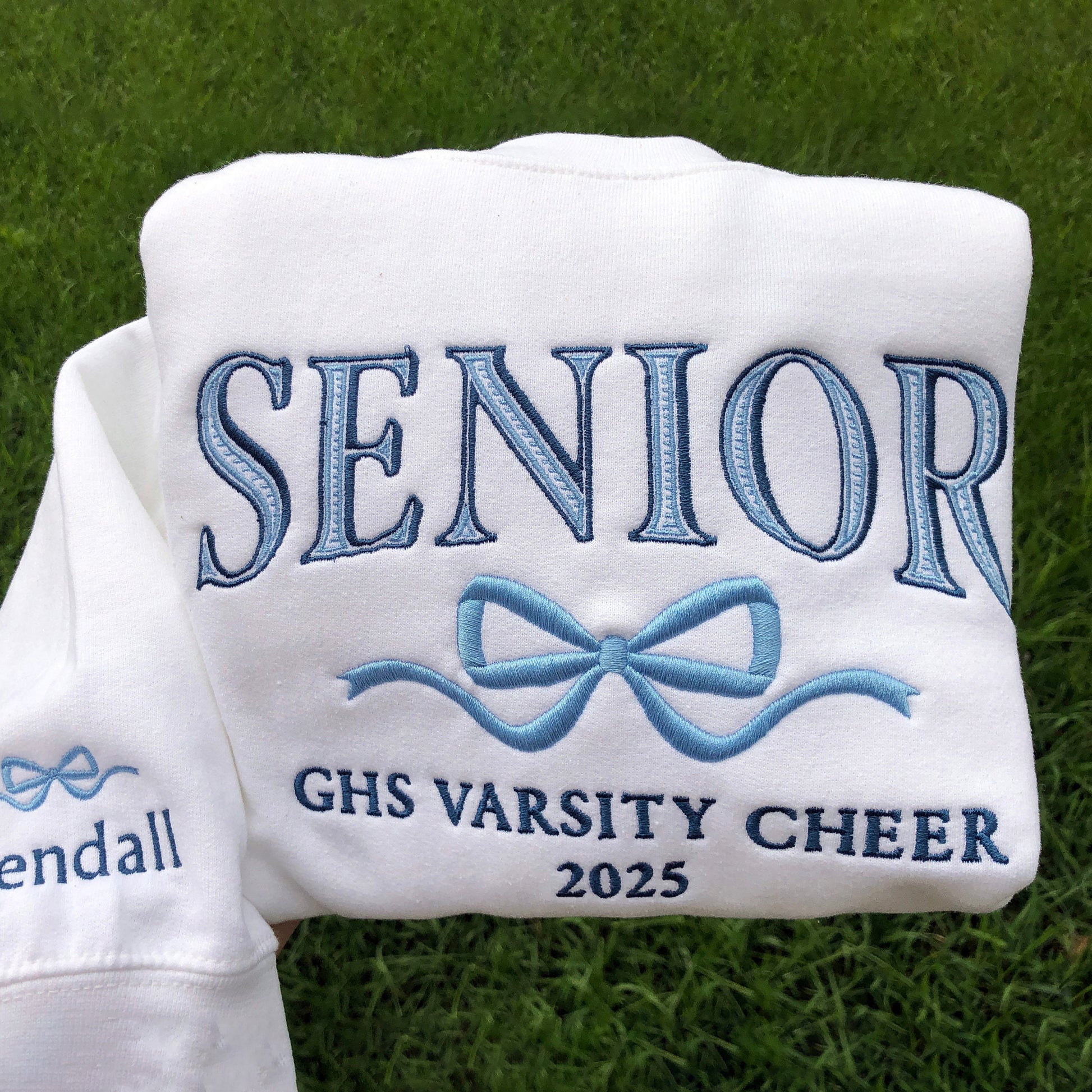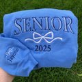 🎓Class Of 2025 - Custom Embroidered Senior Coquette Bow Sweatshirt - Senior Team Shirts,Senior Night, Senior Sunrise, Class of 2025, Senior Cheer Gift🎓