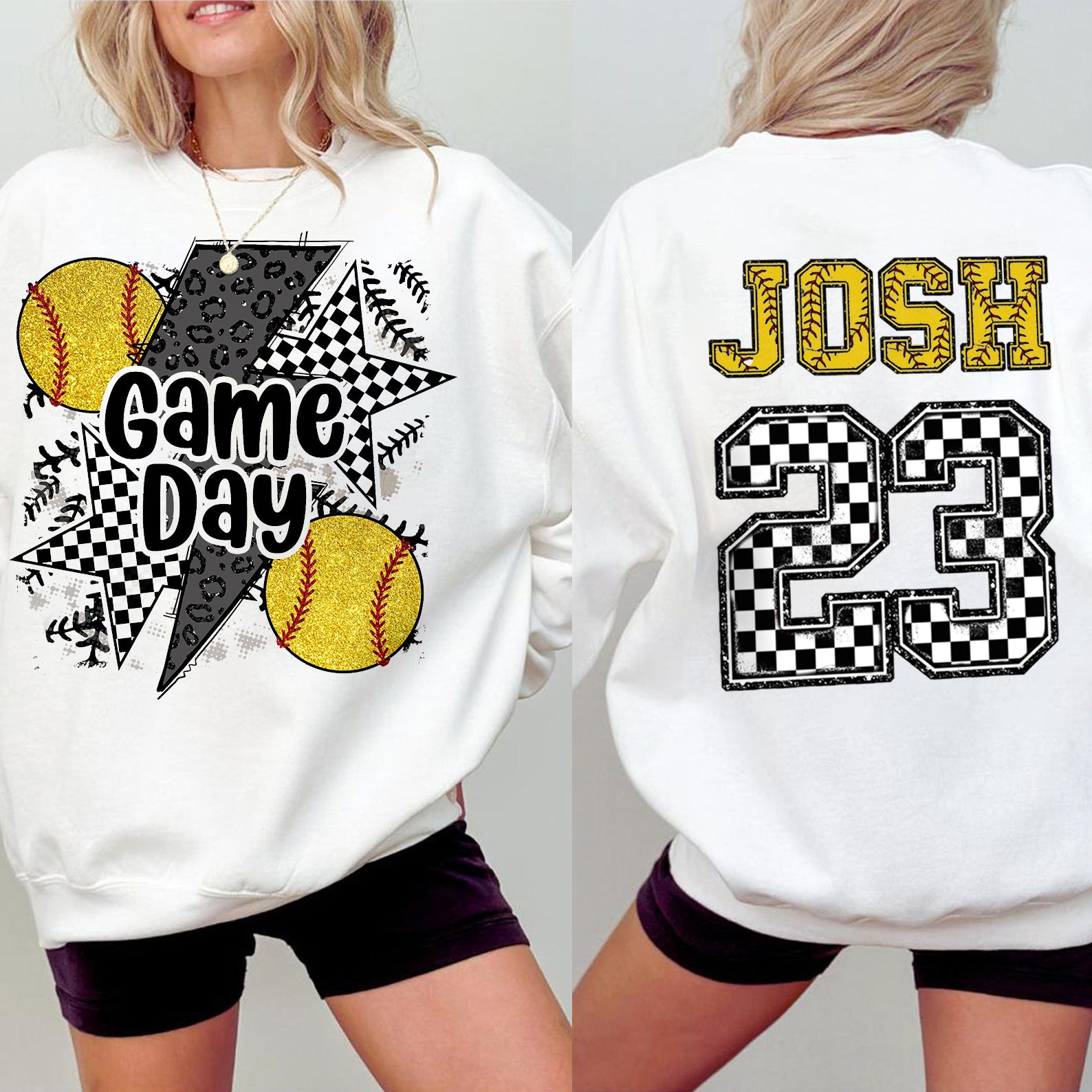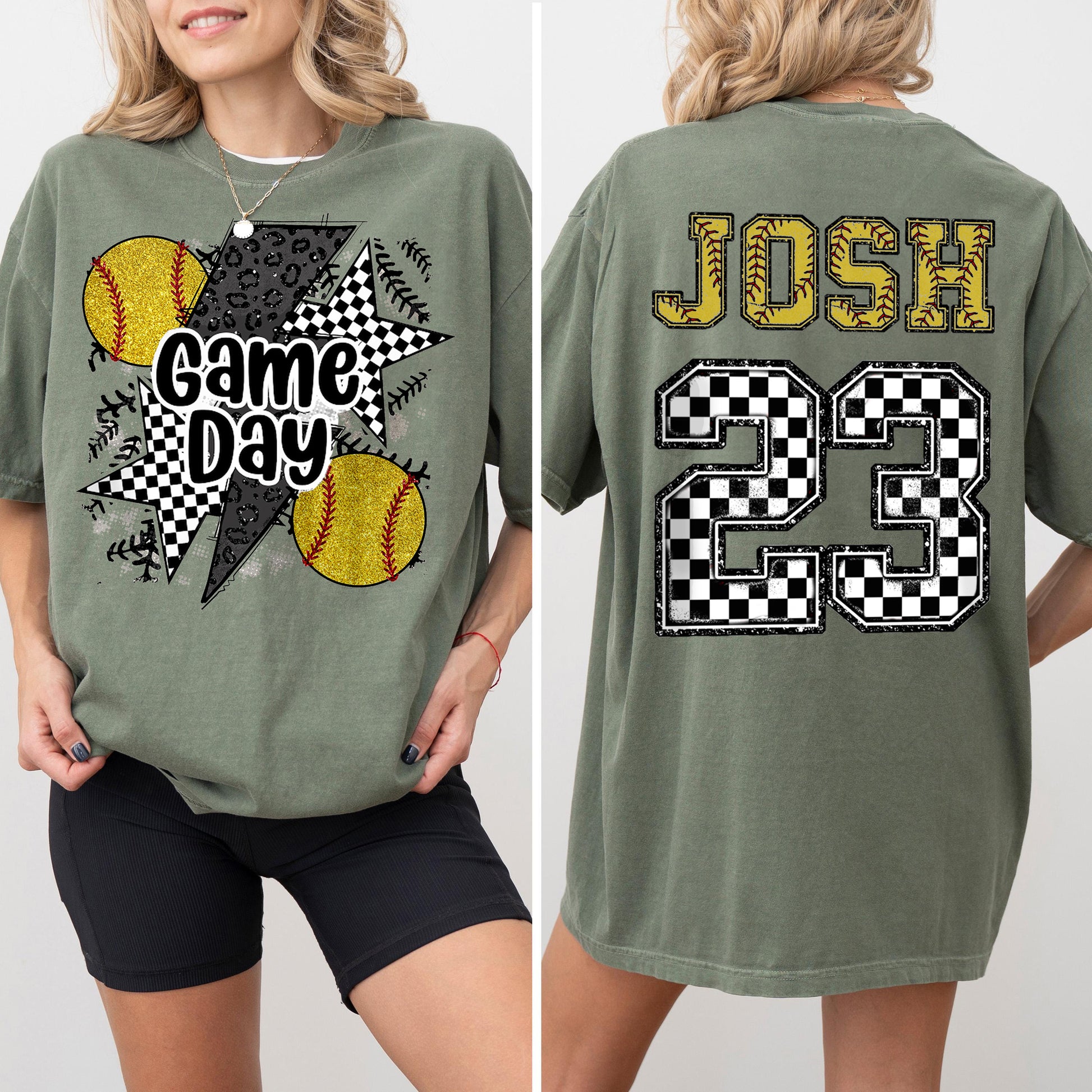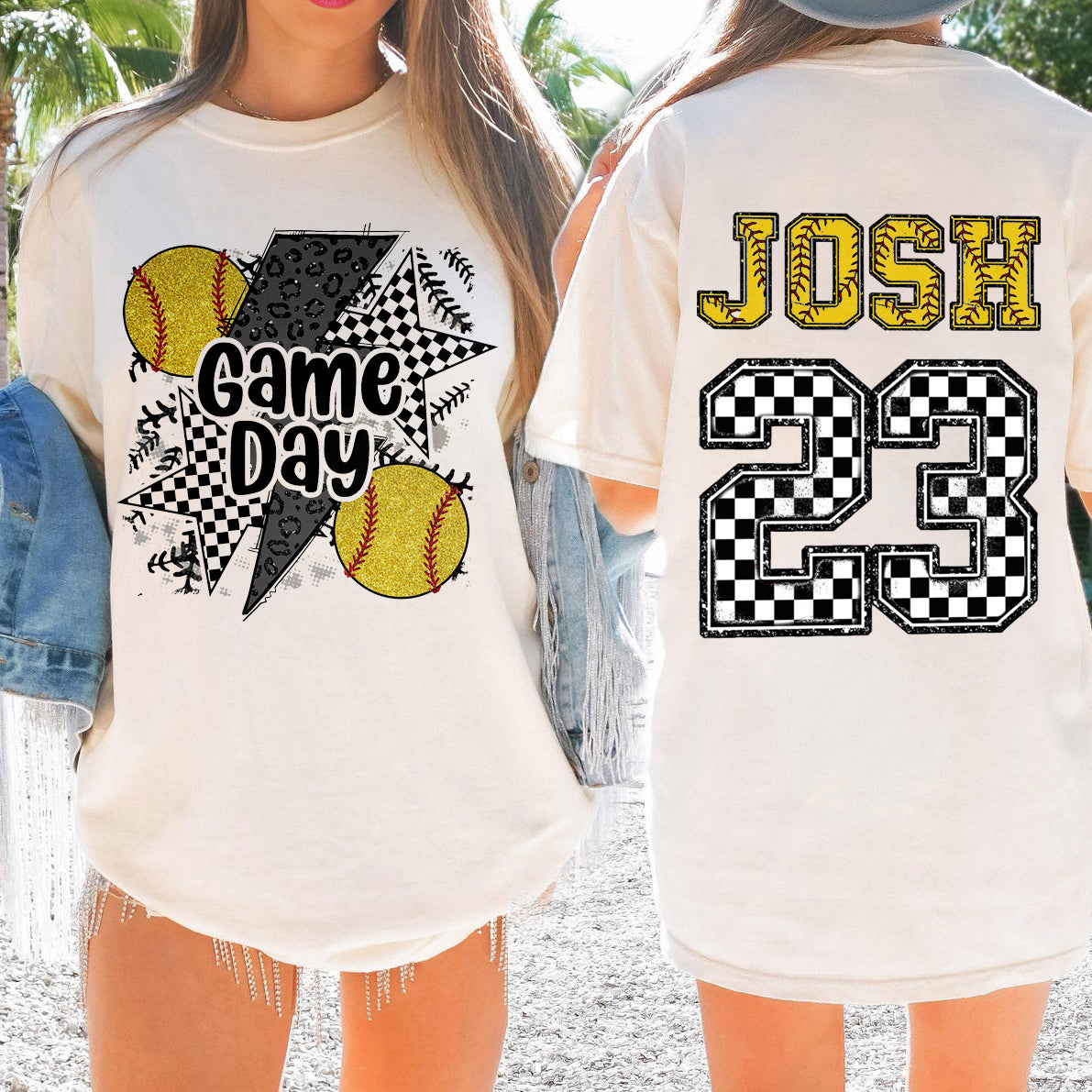 Personalized Game Day Softball Mama Checkered Pattern Cheer Shirt