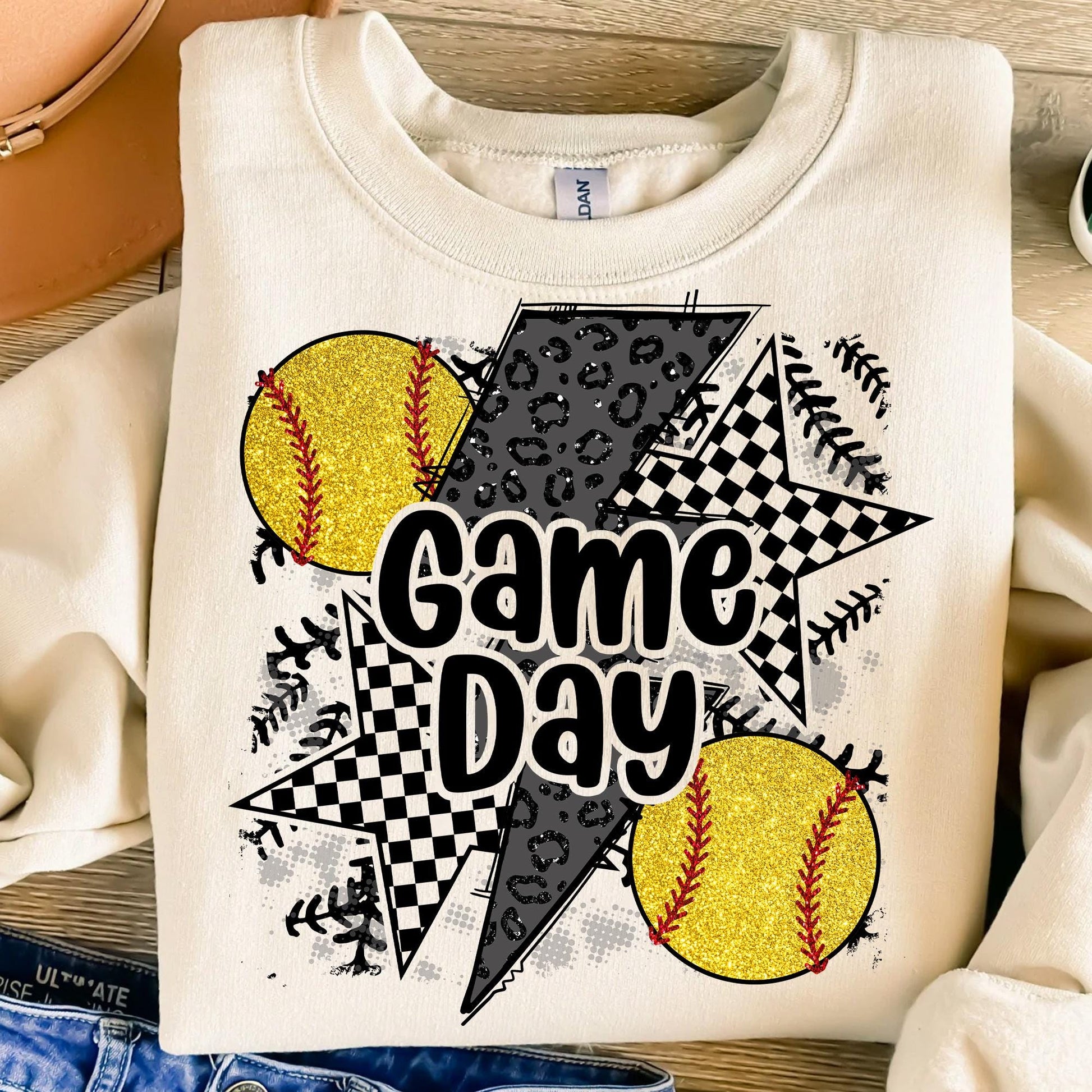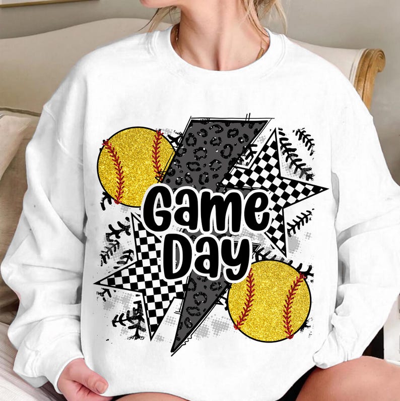 💖Sport Game Day - Personalized Game Day Softball Mama Checkered Pattern Cheer Shirt - Softball Game Day OOTD