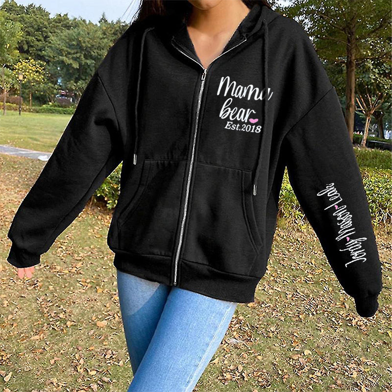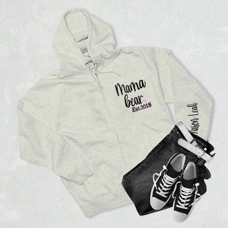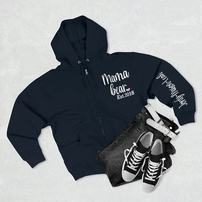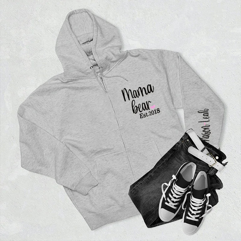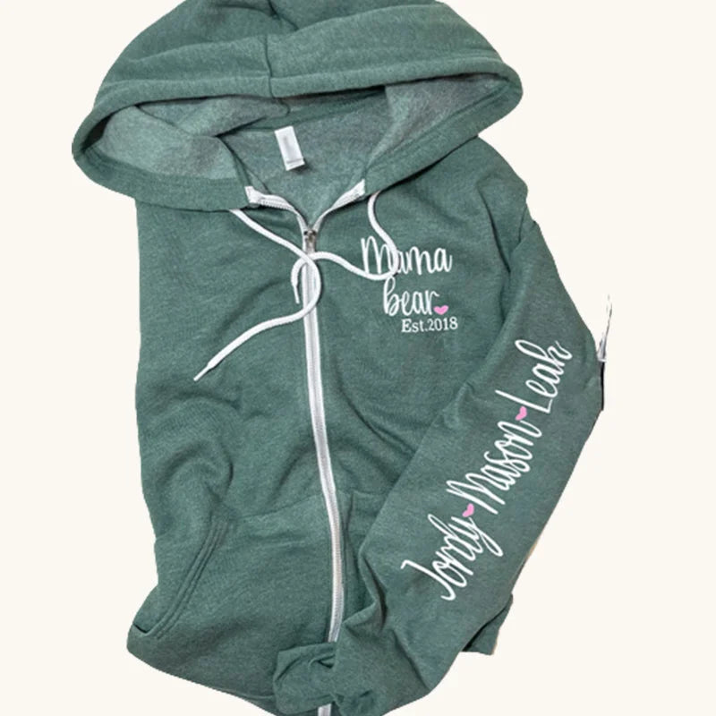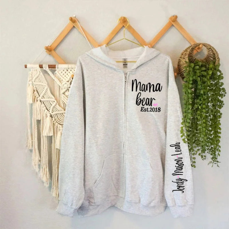 💖Personalized Mama Bear Zip Up Hoodie with Kids Names On Sleeve.💖